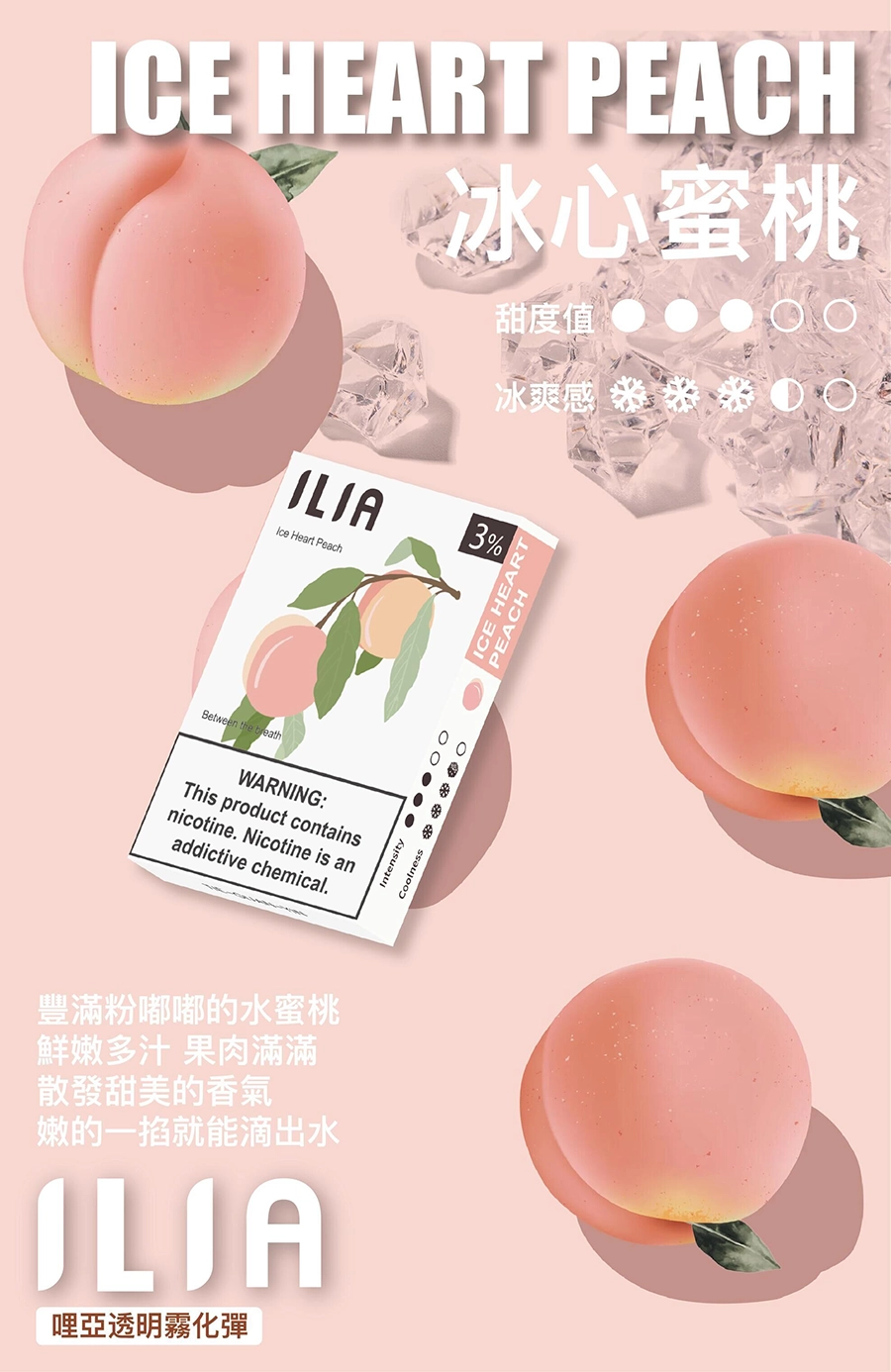 【冰心蜜桃】ILIA透明霧化菸彈 適用於一代主機 3顆替換裝 發光煙彈